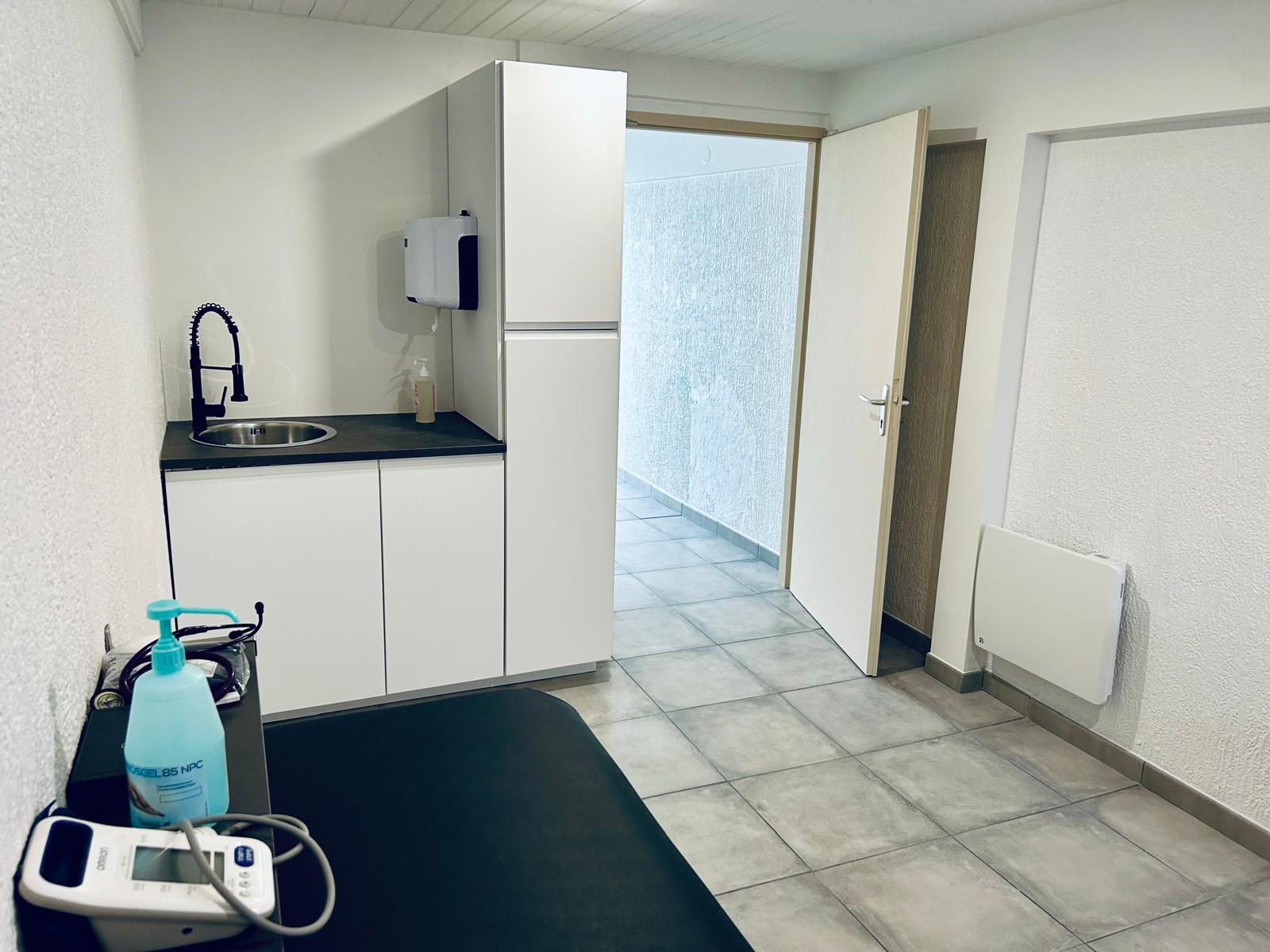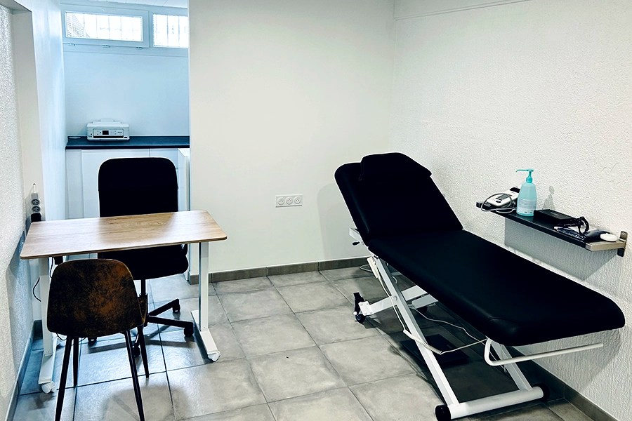 Le cabinet se compose d’une salle d’attente, d’un espace bureau et d’une salle de soins et d’examens. Il est adapté aux personnes à mobilité réduite et se situe au rez-de-chaussée.